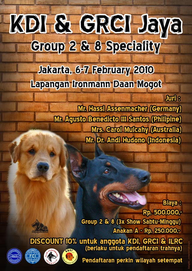 Klub Dobermann Indonesia bekerjasama dengan Golden Retriever Club Indonesia wilayah Jaya akan mengadakan pameran anjing speciality grup 2 & 8 Pada 6 & 7 Februari 2010.