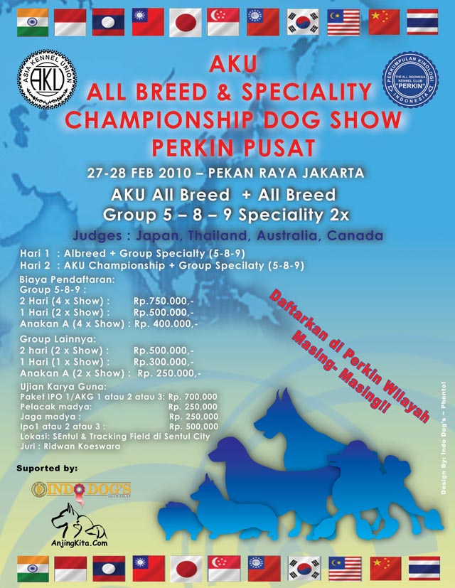 Perkin Pusat kembali menggelar pameran Asian Kennel Union all breed & speciality pada 27 & 28 Februari 2010 di PRJ Kemayoran.