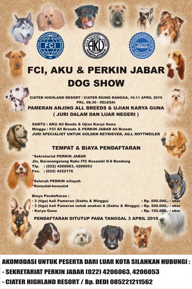 Ikuti dan saksikan Pameran FCI, AKU & Perkin Jabar yang akan diselenggarakan pada Sabtu & Minggu 10 & 11 April 2010 di Ciater Highland Resort, Bandung.