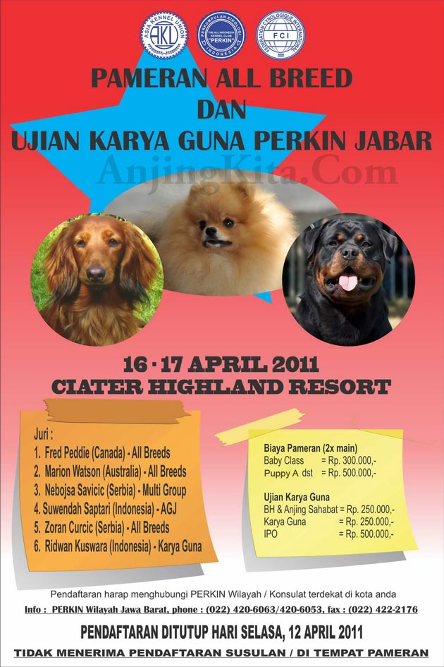 Perkin wilayah Jawa Barat (Bandung) menggelar pameran anjing all breed & ujian anjing karya guna pada:
