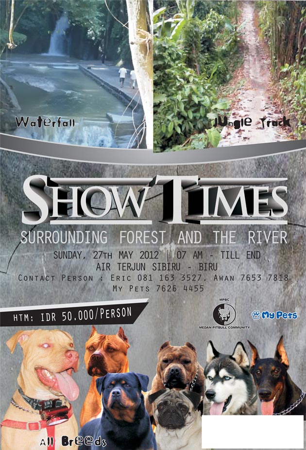 MY Pets dan MPBC (medan pittbull club) menyelenggarakan acara "Show Times" Surrounding Forest & The River pada Minggu 27 Mei 2012 di Air Terjun Sibiru-biru.