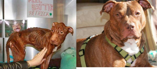Anjing ini diberi nama Patrick, kemudian dia dirawat dengan kasih sayang dan walau dalam waktu yang tidak sebentar akhirnya Patrick dapat hidup dengan sehat kembali