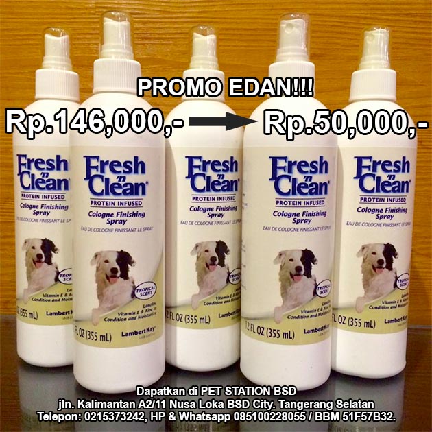 Belanja Rp.300 ribu di PET STATION BSD City bisa tebus Fresh 'n Clean (minyak wangi) hanya dengan Rp.50 ribu dari harga normal Rp.146 ribu. Persediaan terbatas!!! Khusus aroma "Tropical Scent".