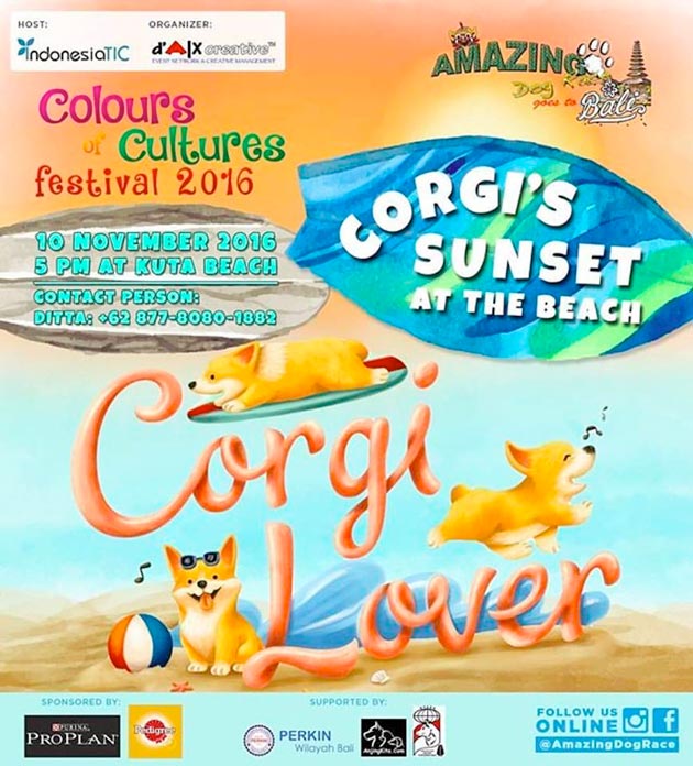 Dear corgi lovers, let's have fun together! Presenting CORGI'S SUNSET AT THE BEACH. We'll be gathering at Kuta Beach on November 10, 2016, starting at 5PM.