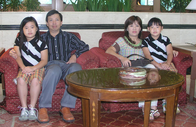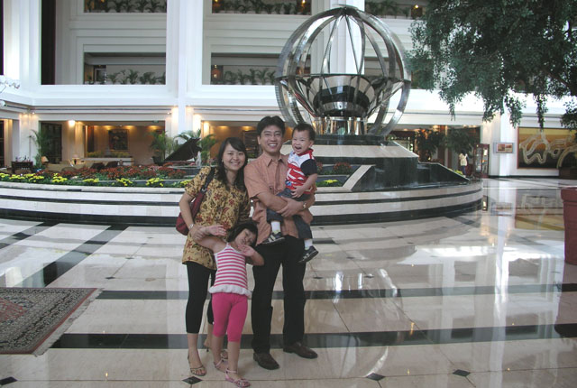 Sekitar pukul 13.30 WIB, kami akhirnya bertemu dengan keluarga Bpk. Albertus Agung. Sosok pria ramah menyambut kami dengan penuh senyuman di lobi hotel ditemani istri dan si kembar cantik Corine dan Cindy.