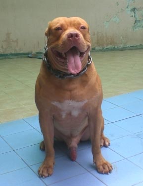 Anjing terlatih, kepala besar, kaki besar, dada lebar Sekali, muzzle yang sangat tebal pendek dan bully.