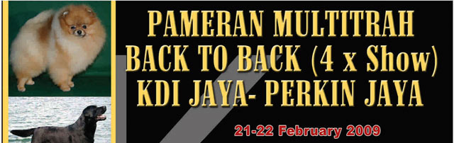 Klub Dobermann Indonesia wilayah Jaya bekerja sama dengan Perkin Jaya kembali mengadakan pameran anjing multi trah back to back (4 kali pameran) pada Sabtu & Minggu 21 & 22 Februari 2009 bertempat di Lapangan Ironman (PT.Videa Elok).