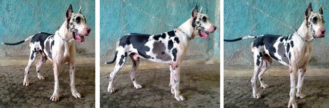 Menyediakan anjing pejantan Great Dane berwarna harlequin dengan bodi proposional dan daya turun istimewa.