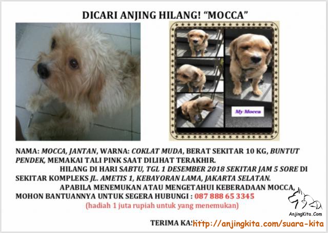 Dicari Anjing hilang bernama Mocca,