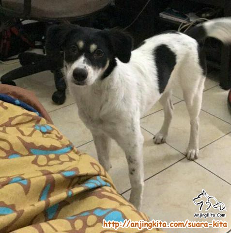 telah kehilangan se-ekor anjing warna putih-hitam dengan alis berwarna coklat, jenis kelamin betina.